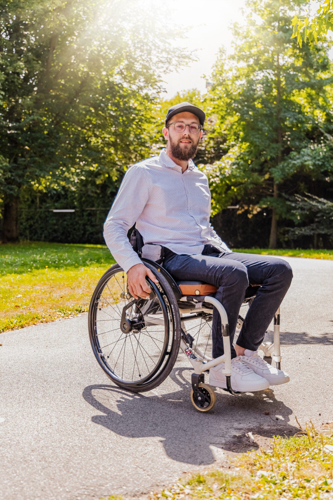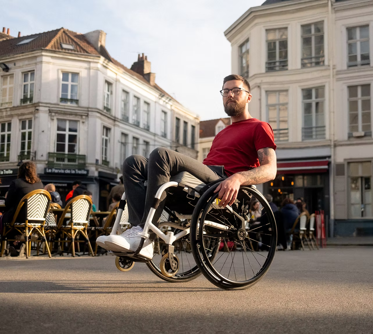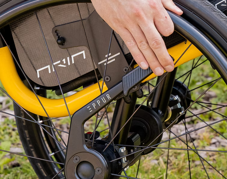 With a power assist device, you get extra power but you also gain extra momentum that can be hard to manage. Skeed wheels act as the perfect partner for your Power assist, giving you full control. By using the integrated hub brake, you can easily guide your chair through tight turns and stay steady on side slopes without straining your shoulders,